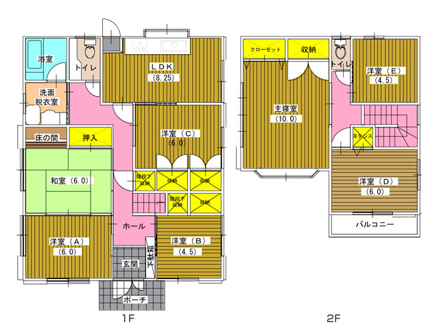 2F:洋10.0帖・洋4.5帖・洋6.0帖 |